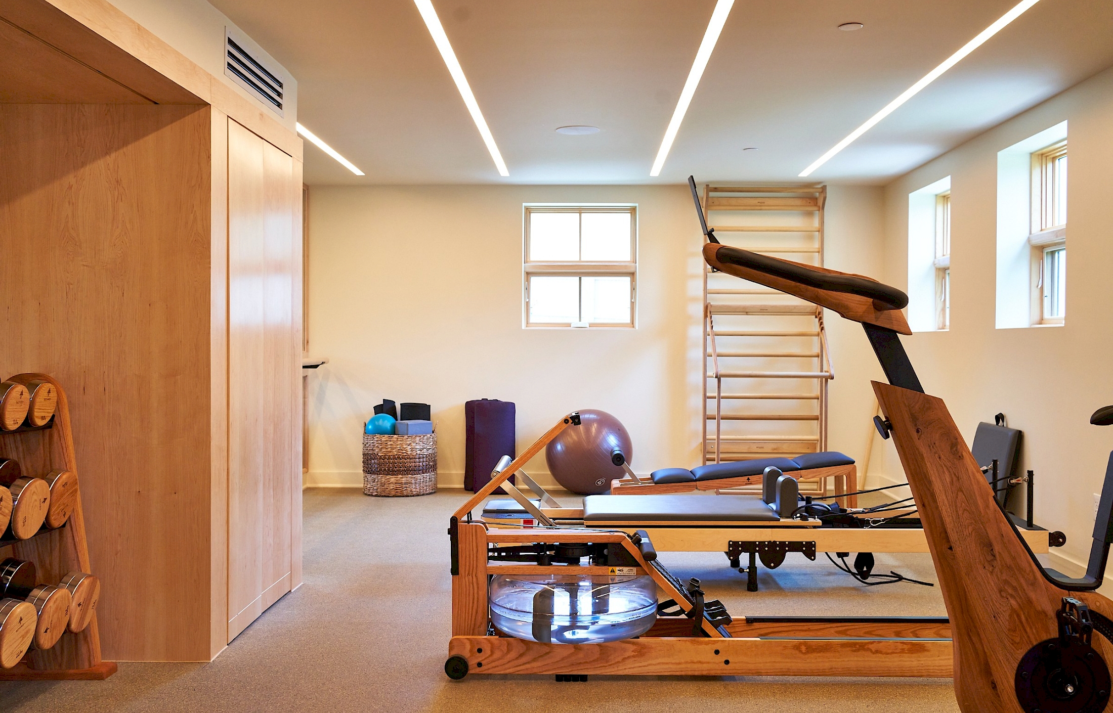 Belden's gymnasium features state-of-the-art fitness equipment, including a Pilates Reformer and the following German-made NOHRD items: WaterRower Performance Ergometer Rowing Machine; Sprintbok treadmill; V2 Bike; nine pairs of NOHRD dumbbells; and wall bars, all in stylish natural oak. Each NOHRD fitness machine has its own tablet.