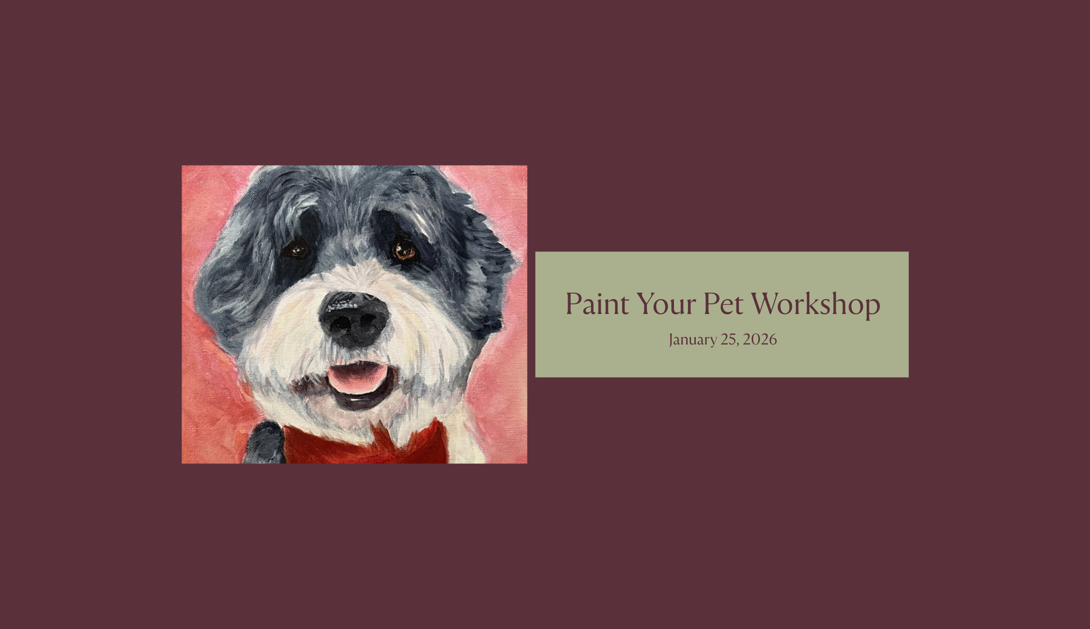 Enjoy step by step guidance on painting your pet at Sage & Salt. Email a photo before hand and turn your pet into a portrait!