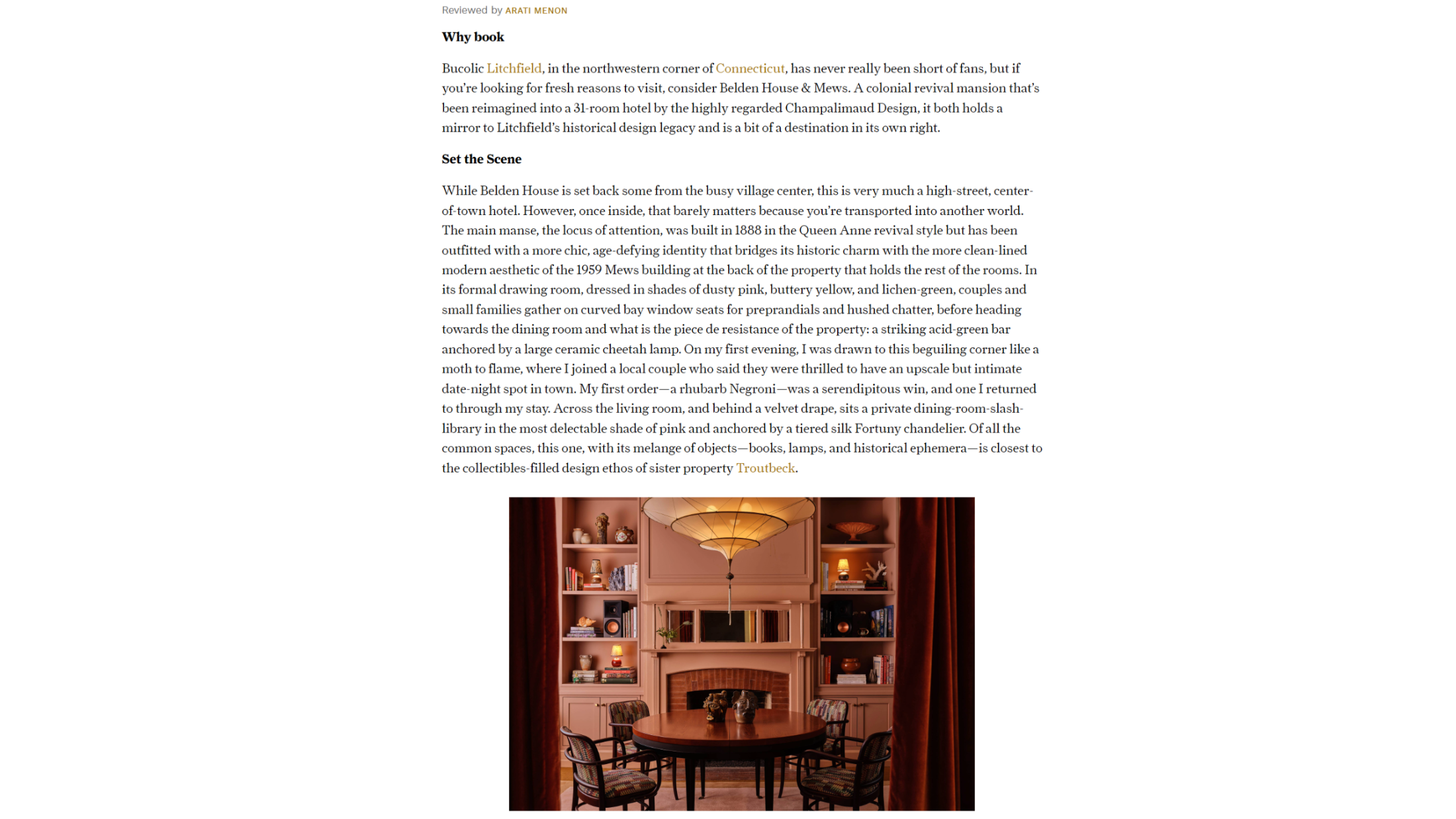 Condé Nast Traveler's Global Digital Director Arati Menon weighed in on Belden with a glowing review.