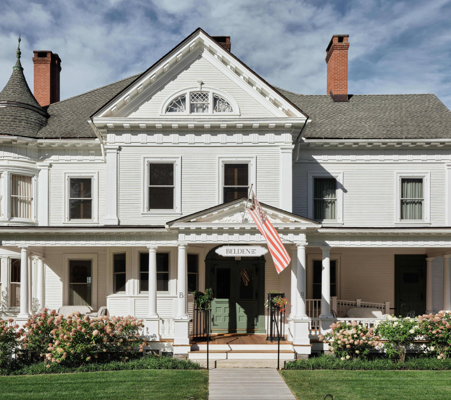 Belden House is an 1888 Colonial Revival mansion with meticulously preserved period details, 10 guestrooms and suites, including the Penthouse, our third floor 3-bedroom suite with three en suite bathrooms, a dedicated living room, dining room, kitchenette and private deck. Belden House also offers the common spaces associated with a stately home: the original living and dining rooms, and a library, all exceptionally outfitted by Champalimaud Design.