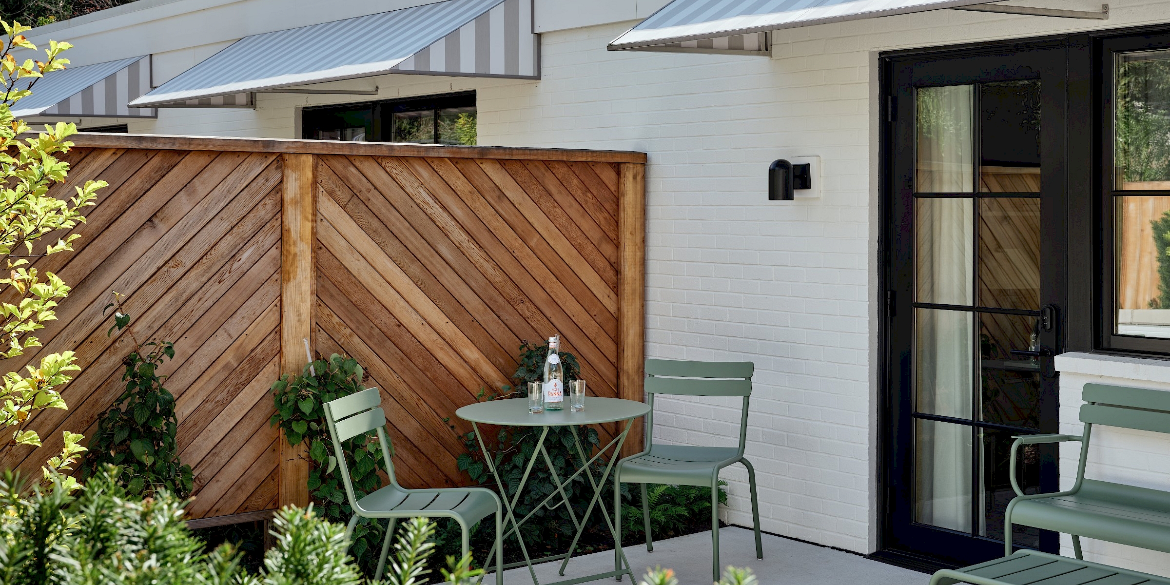 Belden Mews is set back from both North and West streets, behind Belden House. Built in 1959, the Mews epitomizes the straight lines and minimalist ideals that the Modernist architects of that moment embraced. The interiors, however, have all the colorful, plush details associated with Champalimaud Design's timeless vision and the essentials you need for an exceptional stay. All Belden Mews rooms are on the ground floor. Belden Bathhouse is on the Mews' lower level.
